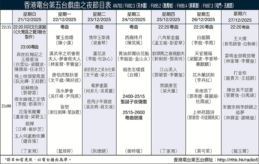 香港電檯(tai)第五檯(tai)戲曲之(zhi)夜節目(mu)表